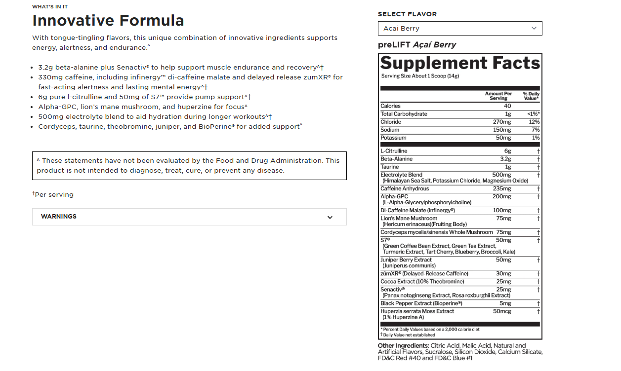 We loaded preLIFT™ with 25 different active ingredients including 6 licensed/patented compounds, designed to help serious lifters prepare and ultimately prevail over any training challenge. Each serving supports mental alertness, muscle endurance, and lasting energy. It’s the complete pre-workout preparation package.^